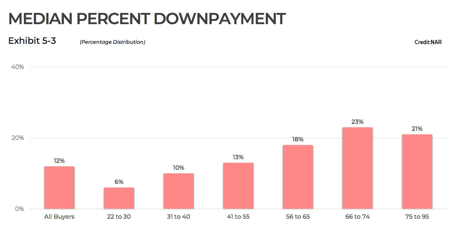 NAR’s data shows that this phenomenon is widespread, with buyers between the ages of 31 and 40 having a median down payment of 10 percent.
